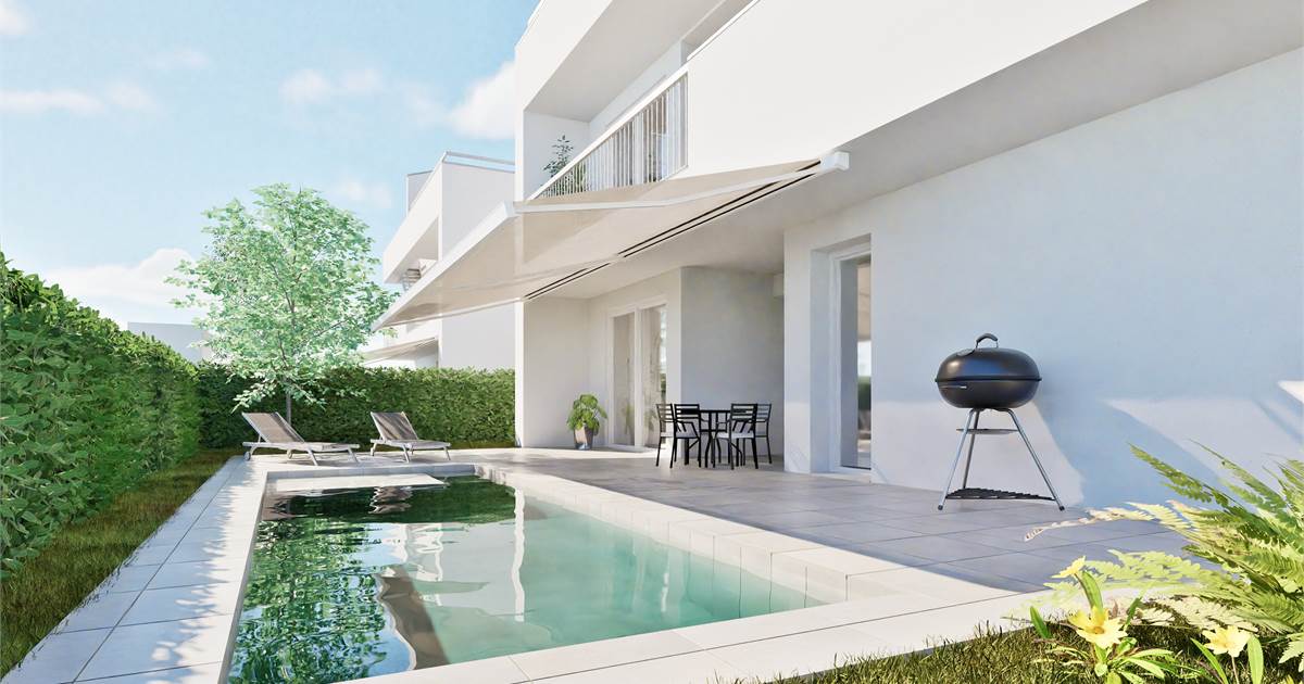 Rovellasca : in zona immersa nel verde , non distante dal centro paese e da tutti i servizi che esso offre proponiamo una nuova costruzione composta da 10 appartamenti realizzati secondo i più elevati standard qualitativi , realizzati con i più innovativi sistemi di risparmio energetico. L'immobile posto al piano terra è composto da un ampio soggiorno di 45 mq ,2 camere da letto e doppi servizi . La zona giorno si completa di un porticato di 22,5 mq ideale per trascorrere momenti di convivialità con parenti e amici o in totale relax godendosi un ambiente verde poco distante. La proprietà è circondata da un giardino di 294 mq OTTIME FINITURE tra cui : i serramenti posati saranno in pvc complete di frangisole gli stessi garantiscono isolamento termico e acustico. Impianto di riscaldamento e ventilazione meccanica controllata che garantisce un ambiente sempre sano e gradevole ,privo di rumore , di umidità , e di grande sollievo per chi soffre di allergie .