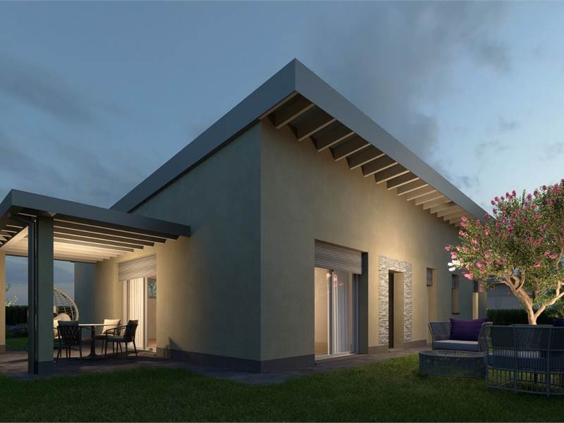 Senna Comasco : NAVEDANO , proponiamo in prossima realizzazione porzione di bifamigliare di nuova costruzione disposta su piano unico e composta da : ingresso nell' ampia zona giorno di 44 mq con uscita sull'ampio portico , ampio bagno finestrato ,disimpegno e ripostiglio , camera singola , camera matrimoniale con cabina armadio e secondo bagno finestrato.