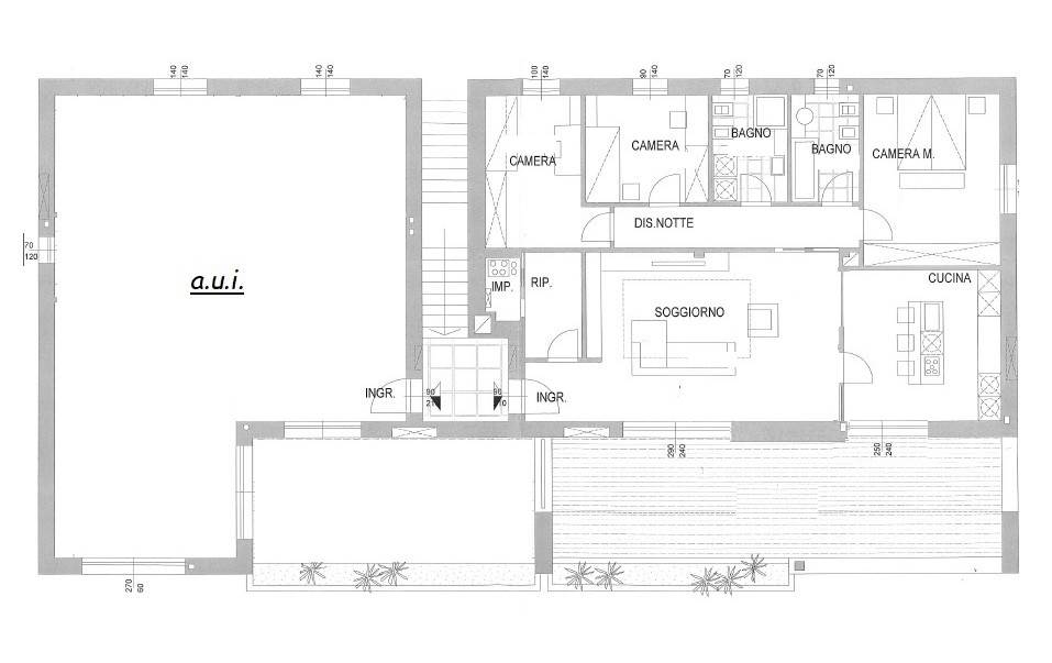 Pertinenziale all'appartamento un'autorimessa doppia in larghezza di 30 mq con basculante sezionale elettrica .