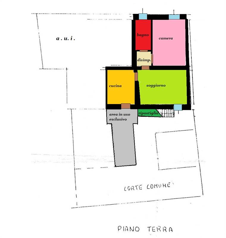 L'immobile è dotato di un rispostiglio esterno e di un posto auto in uso esclusivo .