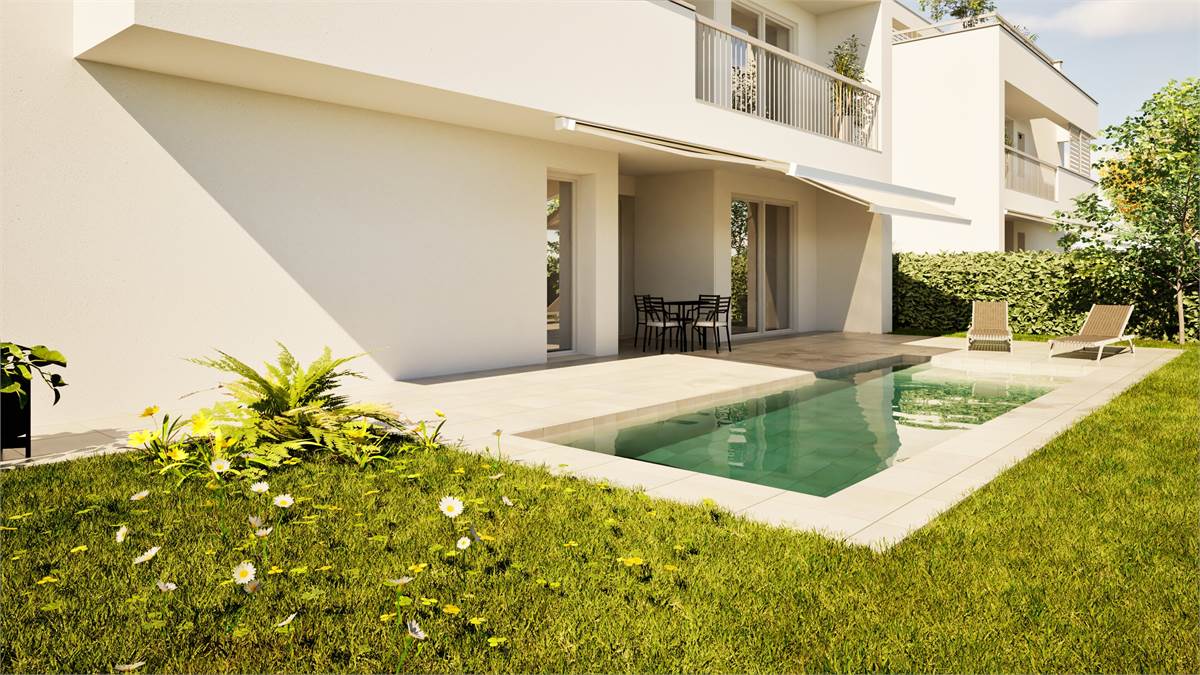 Rovellasca : in zona immersa nel verde , non distante dal centro paese e da tutti i servizi che esso offre proponiamo una nuova costruzione composta da 10 appartamenti realizzati secondo i più elevati standard qualitativi , realizzati con i più innovativi sistemi di risparmio energetico. L'immobile posto al piano terra è composto da un ampio soggiorno di 45 mq ,2 camere da letto e doppi servizi . La zona giorno si completa di un porticato di 22,5 mq ideale per trascorrere momenti di convivialità con parenti e amici o in totale relax godendosi un ambiente verde poco distante. La proprietà è circondata da un giardino di 294 mq OTTIME FINITURE tra cui : i serramenti posati saranno in pvc complete di frangisole gli stessi garantiscono isolamento termico e acustico. Impianto di riscaldamento e ventilazione meccanica controllata che garantisce un ambiente sempre sano e gradevole ,privo di rumore , di umidità , e di grande sollievo per chi soffre di allergie .